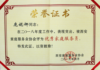 鹿妮娜榮獲家協(xié)“優(yōu)秀家庭服務(wù)員”稱號(hào)