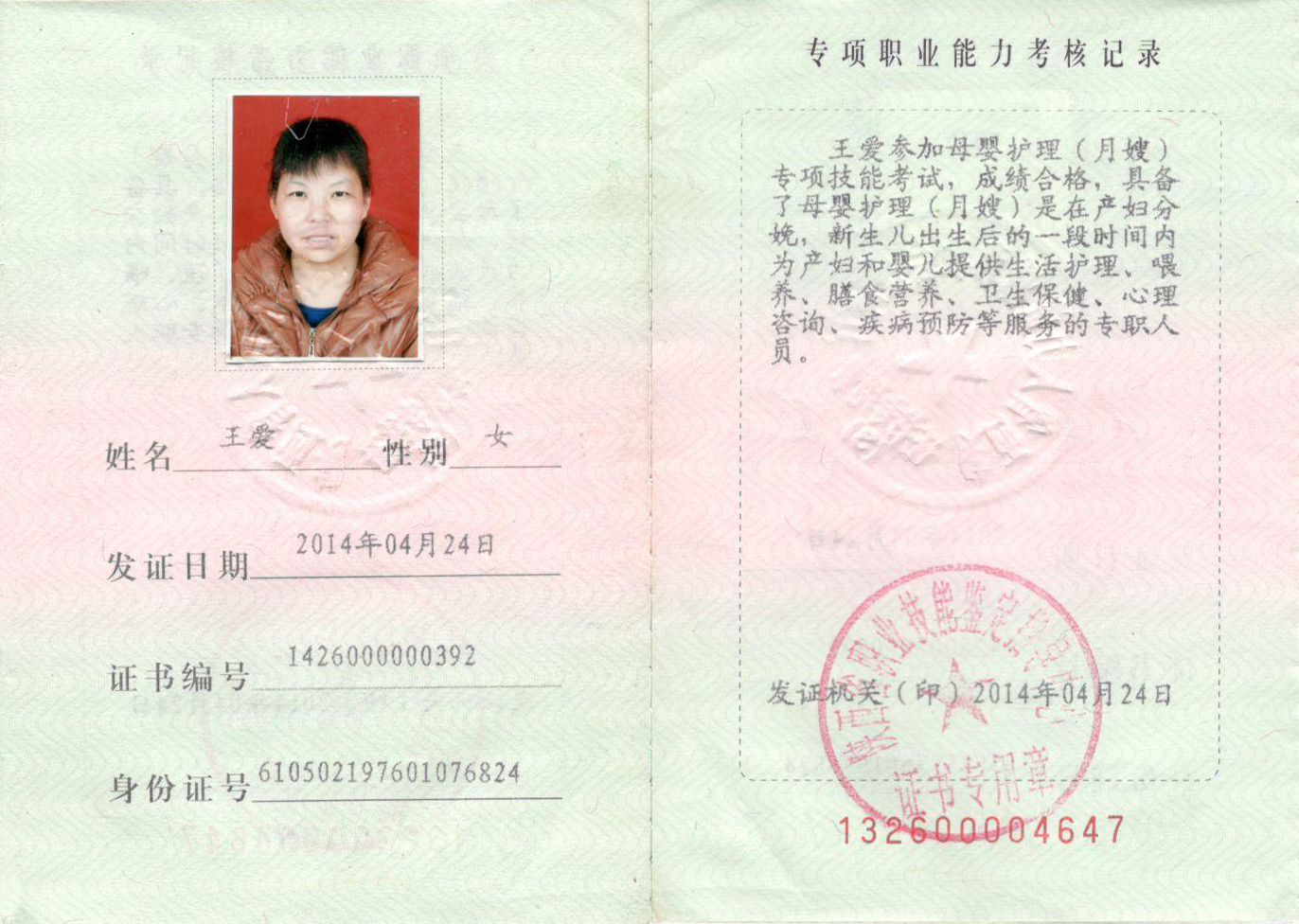 健康狀況:健康 身份證: 61050219760107****