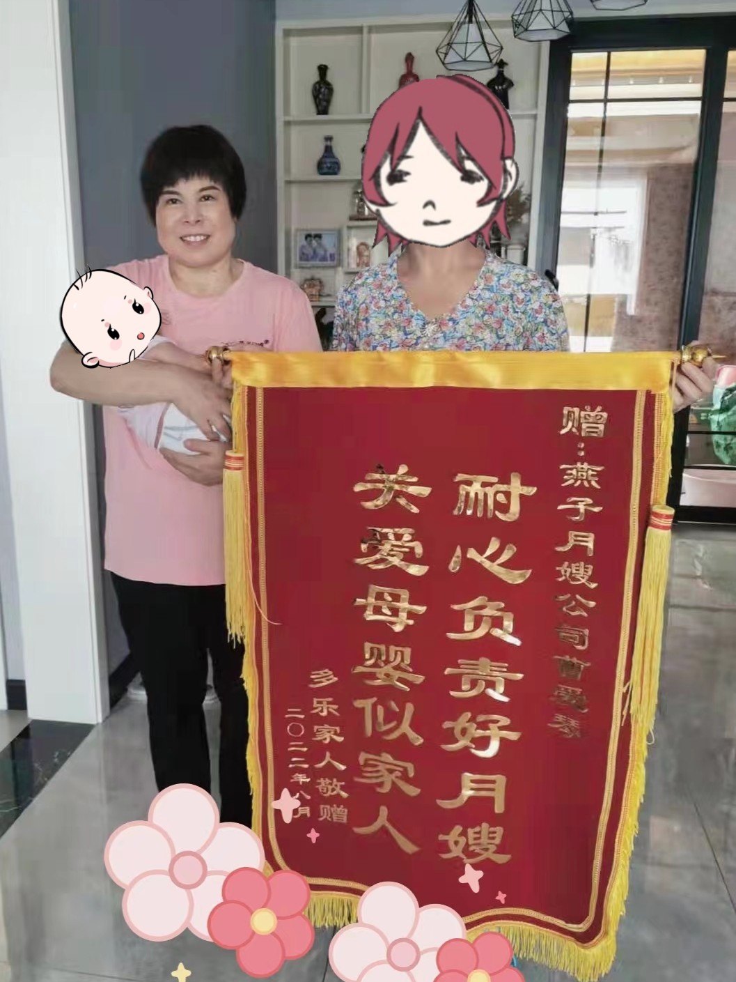 時間過的真快,轉眼52天就要過去了,感謝燕子月嫂公司,感謝月嫂曹阿姨陪我度過了我人生中的如此重要的一個階段。剛生完寶寶時不僅奶水特別少,而且還堵奶,曹阿姨用專業的技能三次就解決了我堵奶的問題,由于曹阿姨每天幫我細心得按摩,因此我的奶水也多了起來,曹阿姨專業的育兒技術讓我坐了個輕松的月子也讓寶寶一出生就享受到了舒適安全的照顧。家務方面阿姨做事干利索,每天把房間打掃的干干凈凈,阿姨做的月子餐美味可口有營養,和家人相處也很融洽,這短短兩個月我們全家都很滿意她的工作,也深深感受到了她的專業,高度的責任心和愛心,在這里感謝曹阿姨這兩個月的付出。