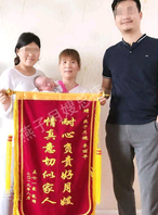 在這里我想感謝月嫂李利平姐姐李姐人特別勤快,做事也利索。我是一個(gè)二胎媽媽,在我坐月子期間李姐不光幫我們帶小寶,給小寶洗澡,換尿布,護(hù)理肚臍,洗屁屁,給我變著花樣做好吃的還幫我們打掃衛(wèi)生,幫我們照顧大寶,給我們一家做飯,每件事情都做的認(rèn)認(rèn)真真,妥妥當(dāng)當(dāng)在護(hù)理小寶的時(shí)候,還給我們講操作步驟,感覺像老師一樣細(xì)心,像家人一樣溫暖,有了她的照顧,讓我度過了一個(gè)溫馨舒適的月子。我們?nèi)覍λ墓ぷ鞫挤浅5臐M意,在此我要感謝燕子月嫂公司為我精心挑選的月嫂,感謝李利平姐姐的細(xì)心照顧,感謝各位老師的關(guān)心和厚愛,最后,祝愿李姐闔家歡樂,祝愿公司發(fā)展越來越好。