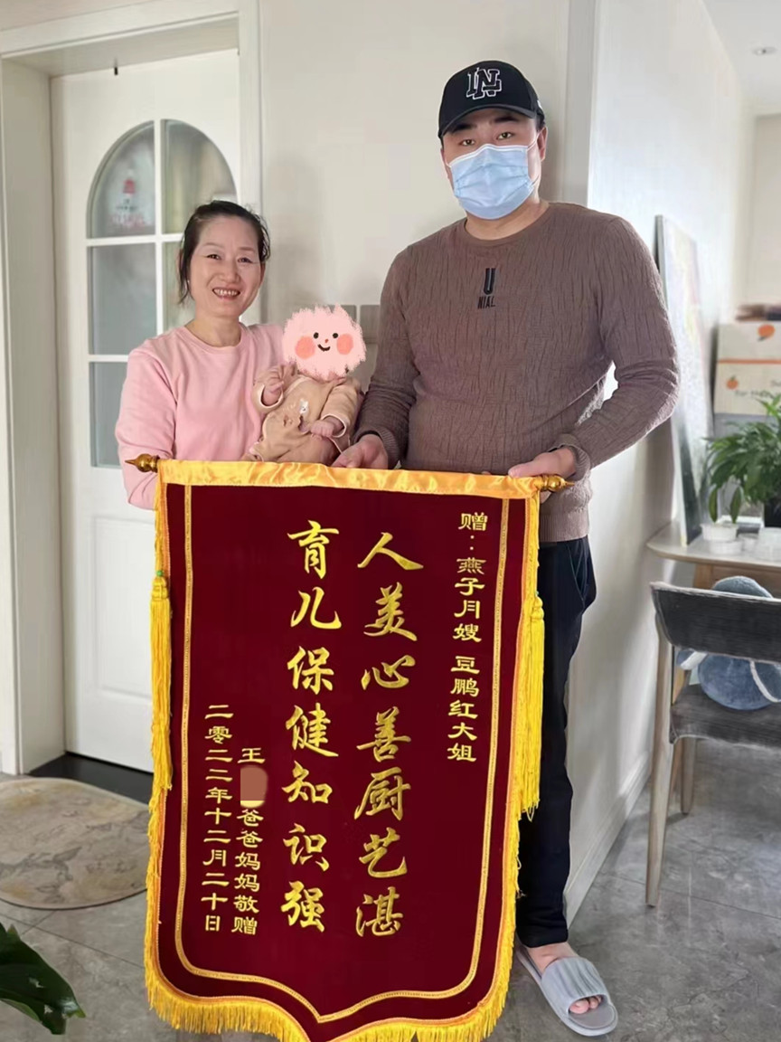 豆姐為人和善,工作很主動什么事情不需要別人吩咐。感謝貴公司豆姐這兩個月用心照顧我和寶寶,感恩在這個特殊時期豆姐的陪伴,祝愿豆鵬紅豆姐身體健康,萬事如意,在日后的上戶工作順心如意。