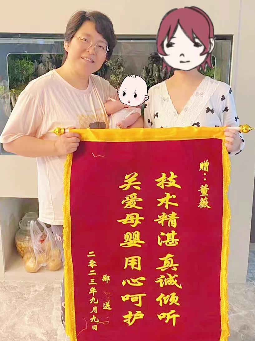 我是一位99年的寶媽,在相處過(guò)程中很融洽,雖然只有短短的50天,但她像我的家人一樣陪在我的身邊。希望貴公司能有更多像董阿姨這樣的月嫂,為更多一胎、二胎的寶媽照顧好月子,免去后顧之憂。
