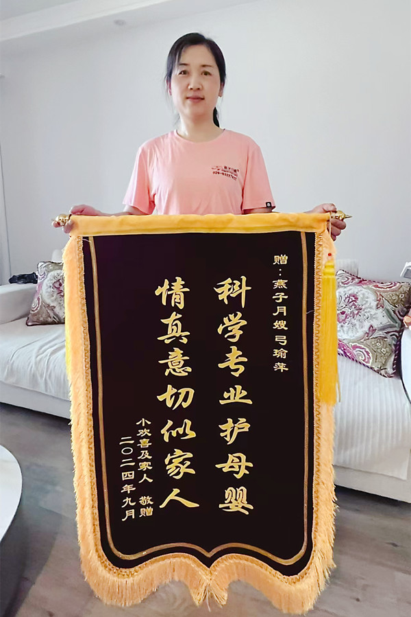 尊敬的燕子月嫂公司,我是年年媽媽,很幸運(yùn)月子期間遇到了神仙月嫂弓瑜萍大姐。以前看到很多寶媽在月嫂下戶時(shí)依依不舍,想流眼淚,我都覺(jué)得太嬌情,現(xiàn)在輪到我了。一個(gè)對(duì)我,對(duì)年年盡心盡責(zé)的弓姐也讓我真心不舍。謝謝弓姐的照顧,她用專業(yè)的知識(shí),耐心的開(kāi)導(dǎo)開(kāi)解我產(chǎn)后的所有焦慮;也用豐富的經(jīng)驗(yàn)調(diào)整年年的習(xí)慣與作息,讓她越來(lái)越天使;更用熱情開(kāi)朗的性格感染著我所有家人,教會(huì)姥姥、爸爸很多帶娃技能。讓我沒(méi)了遠(yuǎn)慮,更無(wú)近憂,何其幸福,因?yàn)楣愕牡絹?lái),我愉悅度過(guò)產(chǎn)后最堅(jiān)苦的一段時(shí)光。